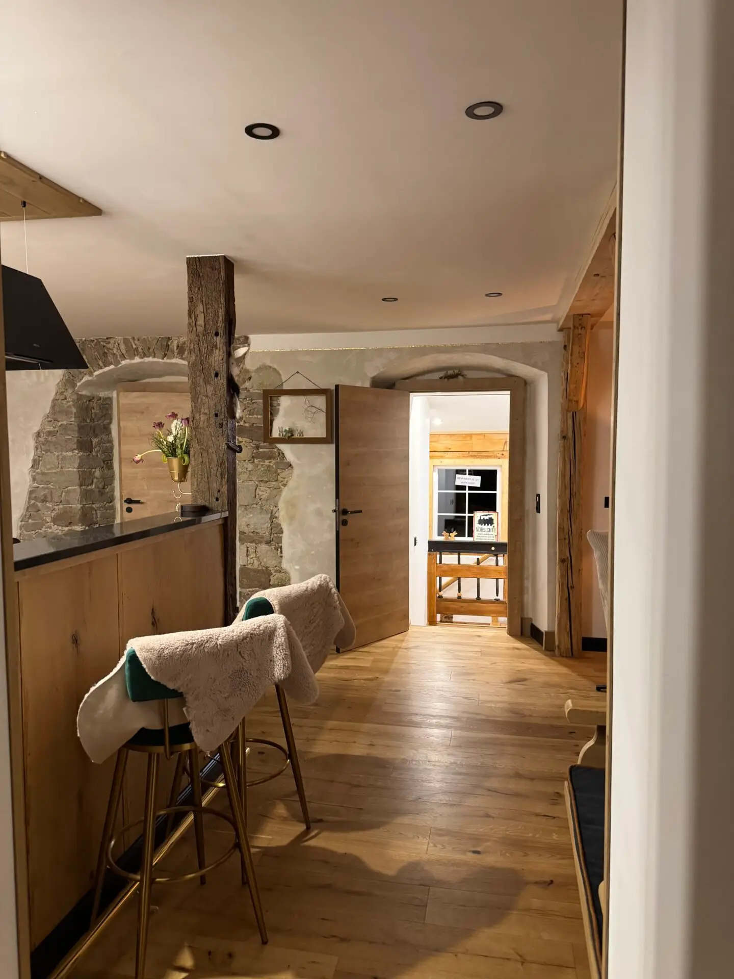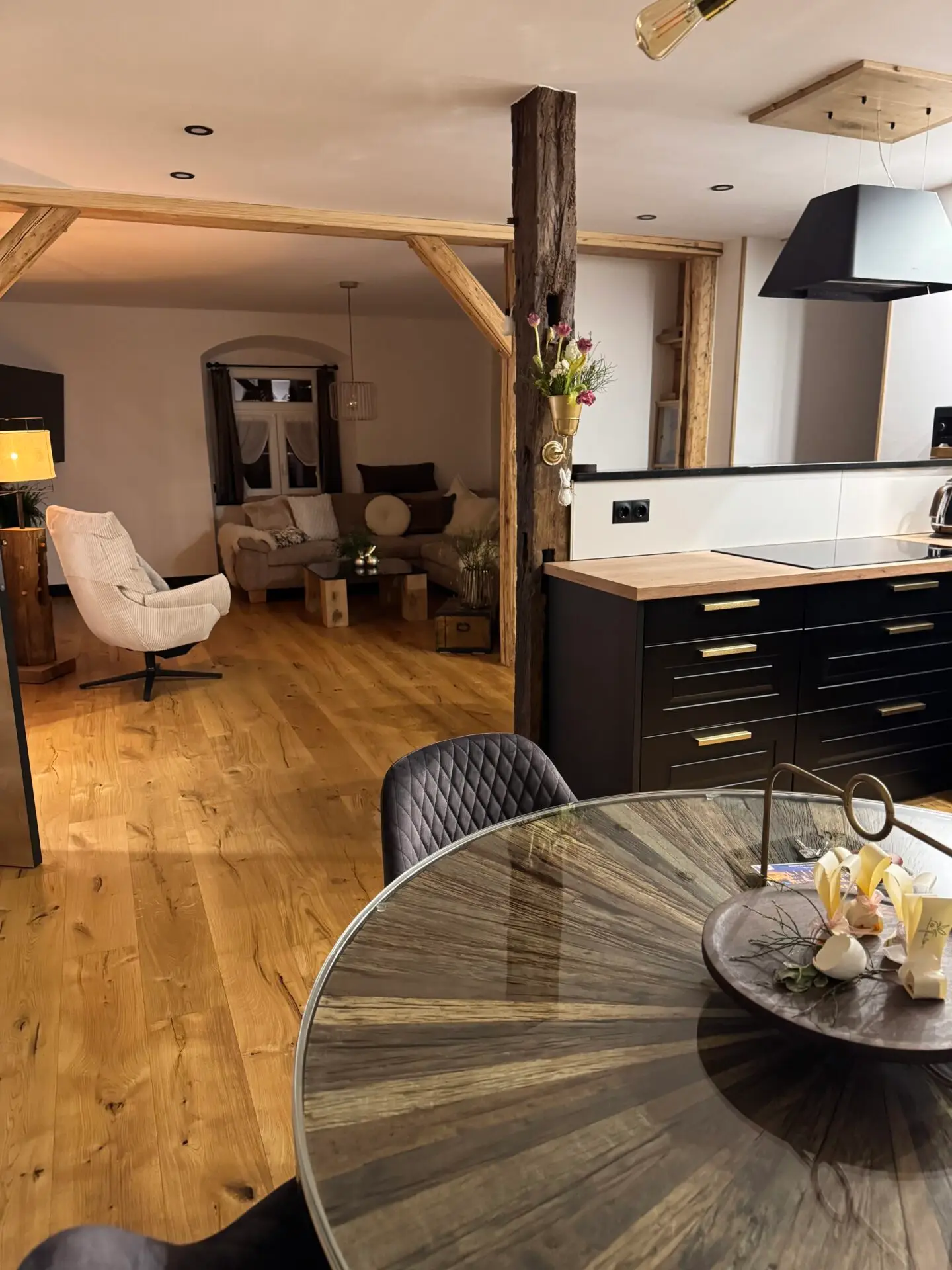 Das Apartment „Zum Mühlrad" bietet auf 143 qm mit drei Schlafzimmern, Panoramakamin und Balkon maximalen Wohnkomfort für bis zu 5 Personen. Großzügig, hochwertig und mit der Harzer Schmalspurbahn direkt vor der Tür.
