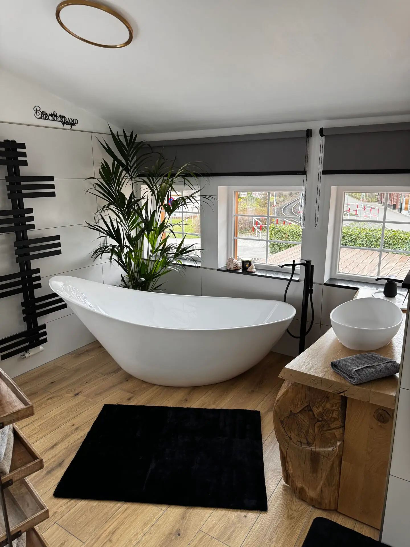 Die Mühlstein Suite lädt auf 126 qm mit zwei Schlafzimmern, Badewanne, Fußbodenheizung und Panoramablick auf die Fachwerkkulisse Wernigerodes zum Entspannen ein. Ihr stilvoll eingerichtetes Zuhause auf Zeit – für bis zu 4 Personen.