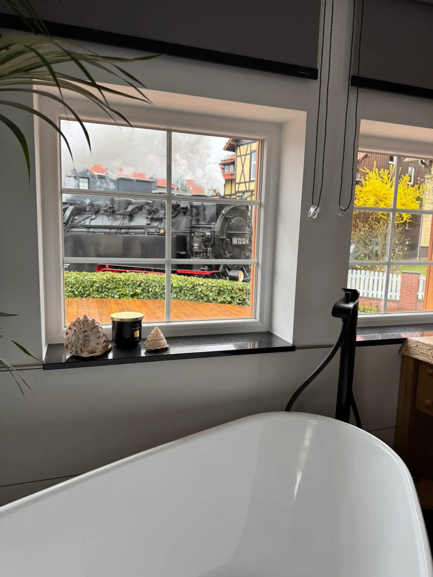 Brandneu seit März 2026: Die Suite Bahnblick „Anno 1748" – 108 qm historisches Flair in einem Haus von 1748, mit modernem Komfort, Balkon und dem unvergleichlichen Blick auf die Harzer Schmalspurbahn. Geschichte spüren, Züge schauen, ankommen.